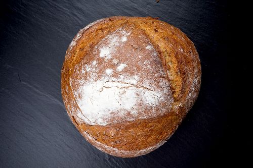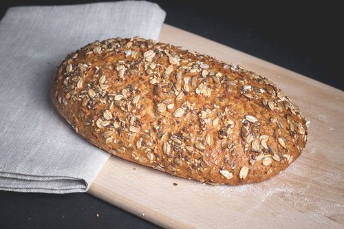 Zutaten: 40% Roggenmehl, 30% Weizenmehl, 15% Sonnenblumenkerne, Haferflocken, Roggenschrot, Sauerteig